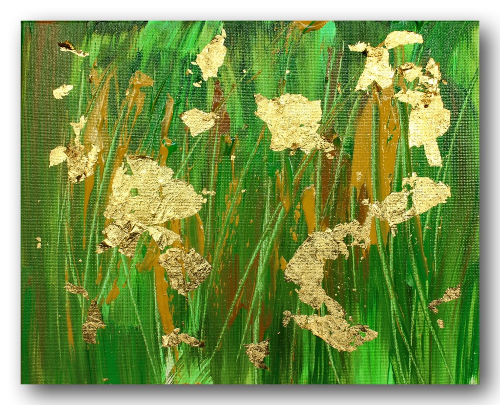 Oil, Acrylic, and Gold Leaf on Canvas Board